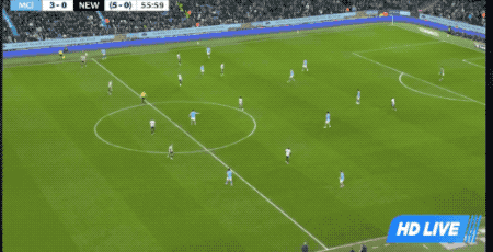 半场结束,曼城不费吹灰之力,就取得了3-0的领跑 ,纽卡斯尔只有4次射球 。