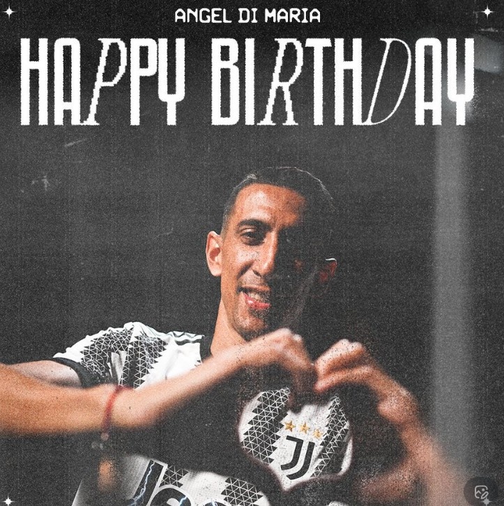 尤文官推晒照祝迪马利亚38岁生日快乐,曾为球队贡献8球7助