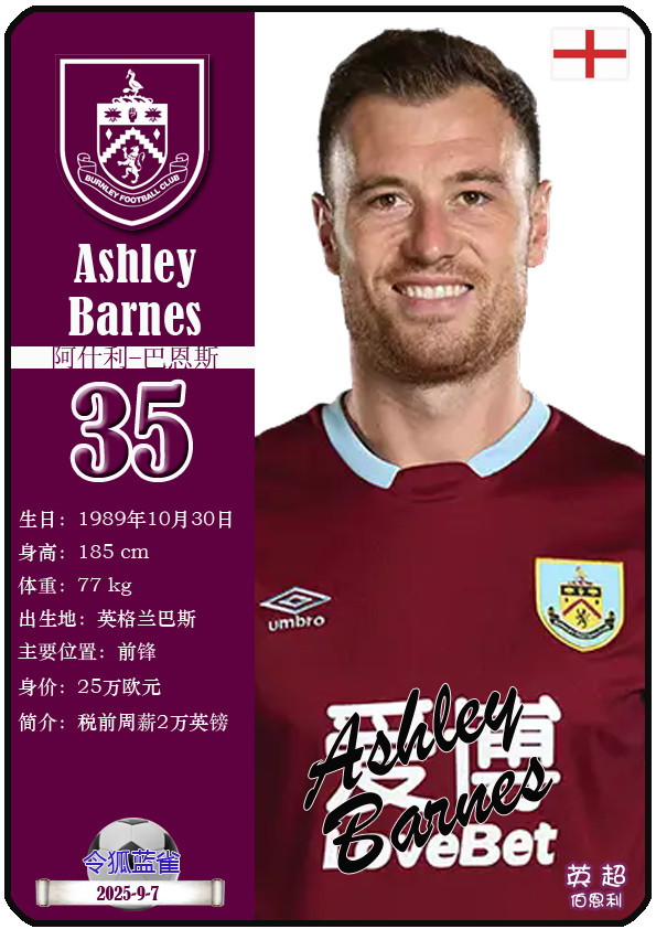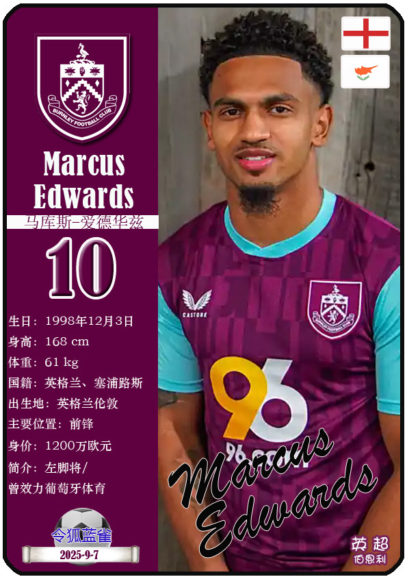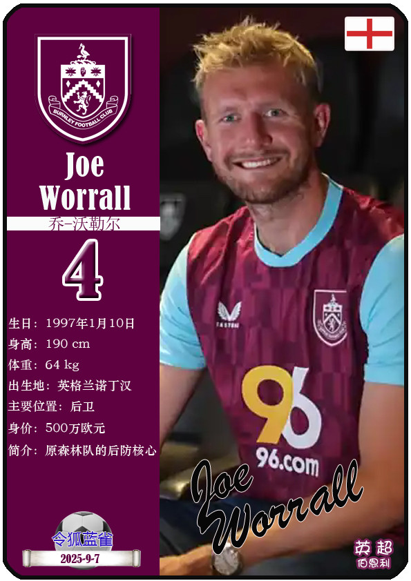 英超伯恩利古代足球 俱乐部成立于1882年雨燕360体育免费直播,距今已有143年历史,是本赛季升班马。截至2025年9月7日,球队主指导教练员是斯科特-帕克,英超比赛在线观看无插件队内拥有球员马库斯-爱德华兹、莱尔-福斯特、凯尔-沃克等。本期以球星卡的形式展示目前英超伯恩利古代足球 俱乐部的28名球员(按运动活动 服 号码排序):