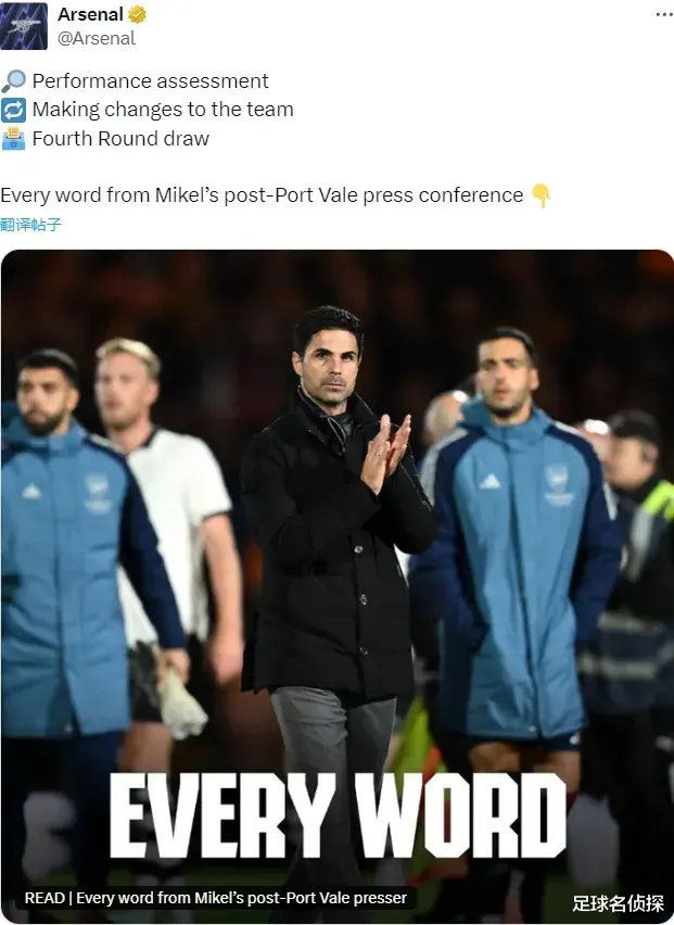 阿尔特塔出席了赛后新闻发布会,我们来看主要内容。