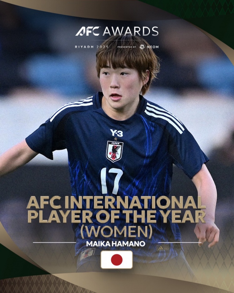 10月17日讯 据亚足联官方社媒的消息,2025年亚足联年度亚洲最佳海外女古代足球 员的评选结果揭晓,日本球员滨野舞香当选。