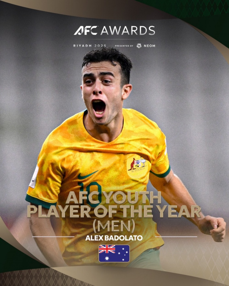 10月17日讯 据亚足联官方社媒的消息,2025年亚足联年度最佳青年球员的评选结果揭晓,澳大利亚球员巴多拉托当选。