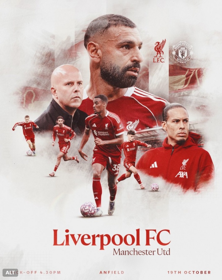 10月19日讯 本周日,利物浦将在主场作战 对阵曼联,利物浦在俱乐部官方社媒发布了赛前海报。