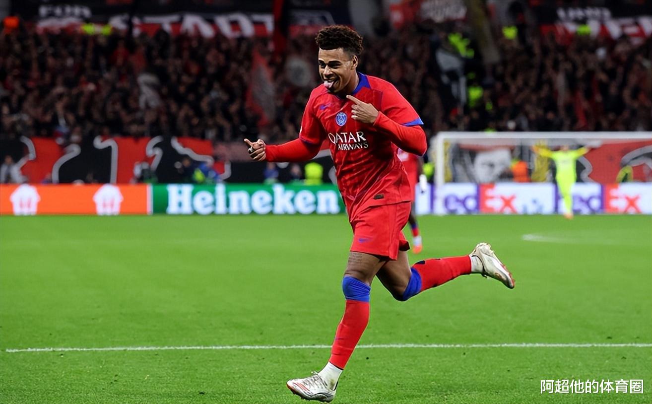 第44分钟,大巴黎前场反断成功,克瓦拉茨赫利亚内切兜射击中了立柱弹进网窝,3:1!半场结束前,勒沃库森攻击 未果又被打了快攻,阿什拉夫精准分球,杜埃远射世界波连进两球,4:1!