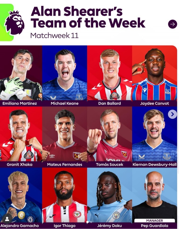 11月10日讯 本轮英超战罢,阿兰-希勒也评选出本轮英超最佳阵,英超直播具体如下: