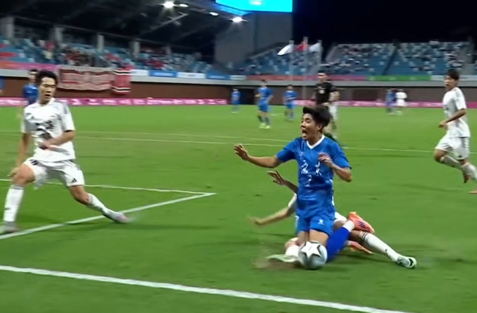 11月10日讯 全运男足U20准总决赛 广东U20vs上海U20。赛事 第87分钟,黄铭放铲,钟文危险区域 倒地,广东队获得十二码球,英超直播上海队选择换守门员应对,但张志雄主罚命中将比分改写为1-0。