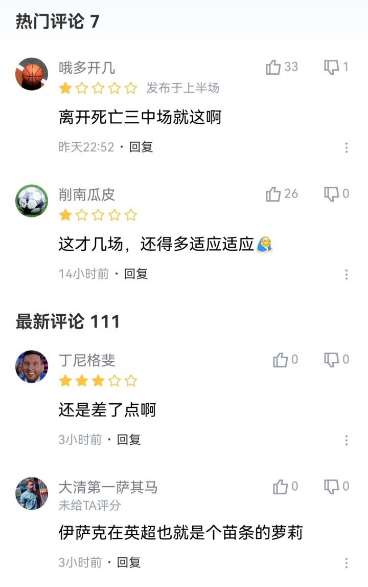 昨晚英超第6轮,利物浦1-2不敌水晶宫吃到赛季首败。本场赛事 伊萨克杆位出场,但表现平平,射正、过人等多项数据挂零,英超免费在线高清直播遭到球迷吐槽,仅得到4.4的低分。