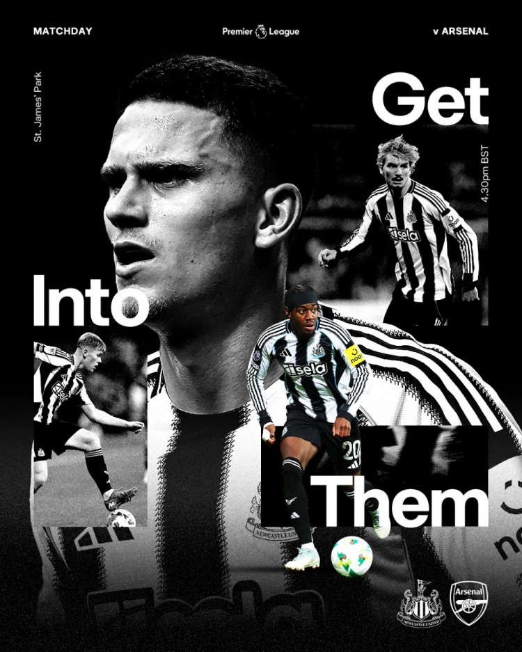 阿森纳、纽卡发布了为此役制作的海报,24直播网阿森纳的海报中萨卡单人出镜,纽卡的海报则是博特曼、伊兰加、沃尔特马德等球员出镜。