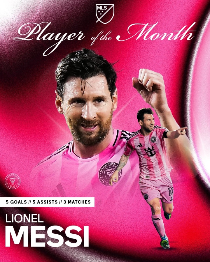 10月22日讯 美职联官方宣布,38岁梅西被评为美职联10月最佳球员,3场赛事 贡献5球5助功 !