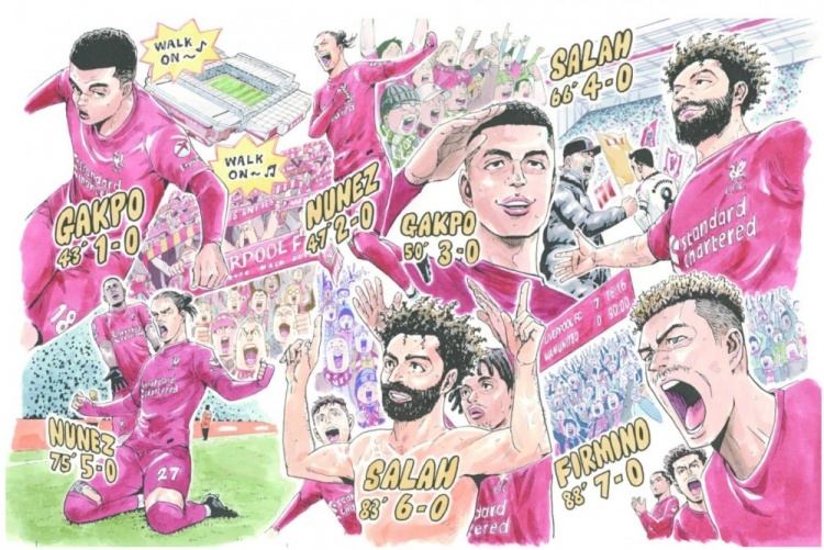为了纪念这一历史性时刻,日本漫画家辻智(Tsujitomo)创作了一幅特别的漫画作品。辻智以其在《GIANT KILLING》系列中的工作而闻名,英超比赛在线观看无插件他亲自访问了默西塞德郡和安菲尔德运动活动 场 ,为这幅作品进行研究和准备。