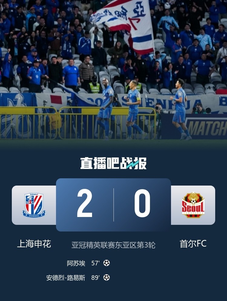 10月22日讯 亚冠精英职业联赛 东亚区第3轮,上海申花主场作战 2-0击败首尔FC,收获本赛季亚冠首胜。